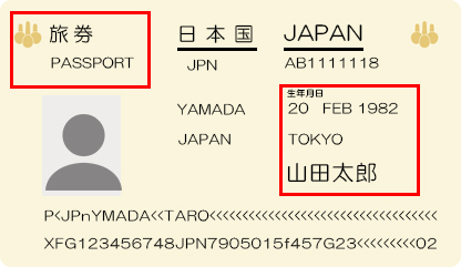 ・生年月日 ・「旅券」の名称部分 ・本人の顔 ・発行庁の名称部分 |